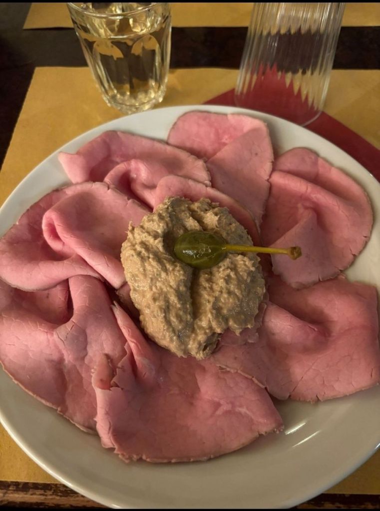 In molti consigliano il vitello tonnato, io personalmente ho amato il brasato, cotto a regola d’arte e accompagnato dal purè di patate.