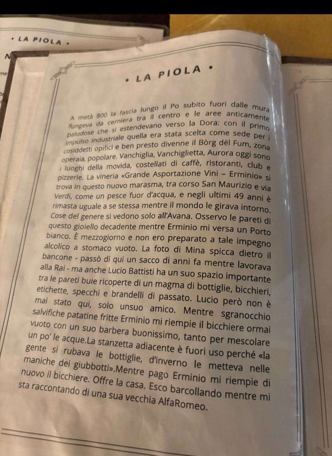 La Piola aperta dal dopoguerra a Torino ti farà rivivere una storia che ormai non si trova più, si possono ancora sentire e vedere gli odori e i ricordi di tempi in cui il vino scorreva a fiumi e tutto sembrava andasse meglio.